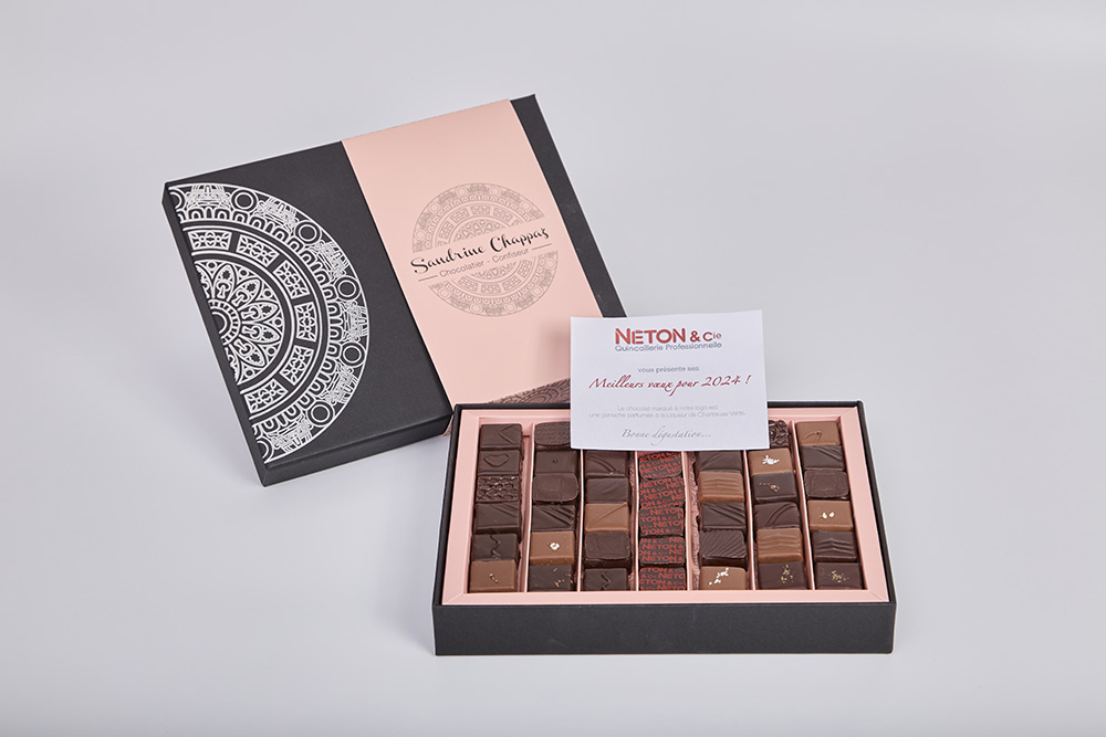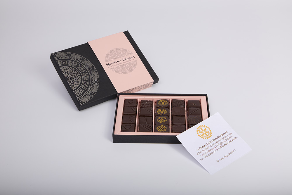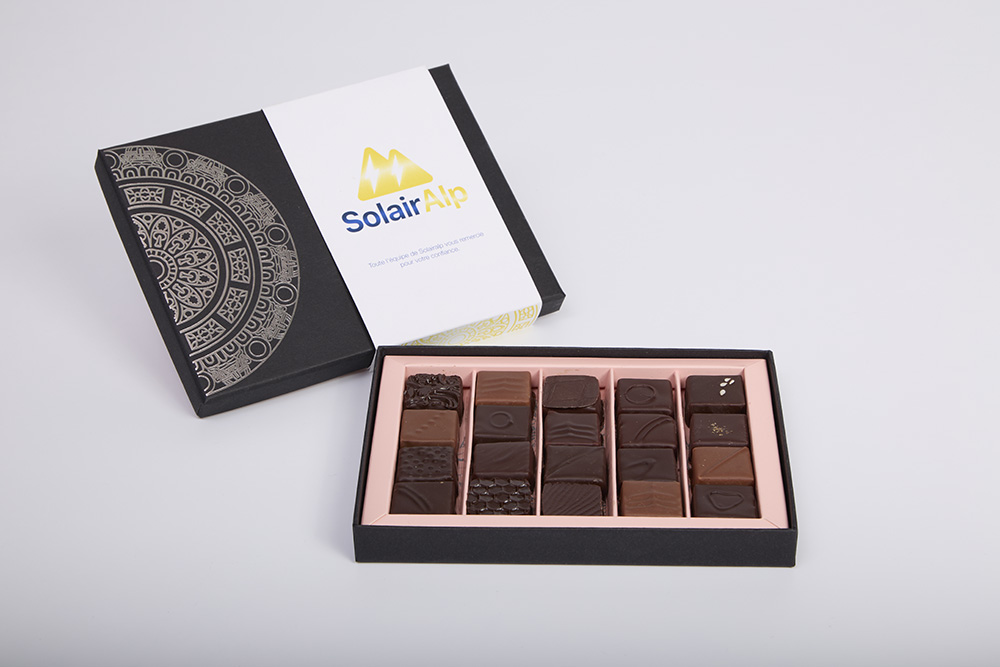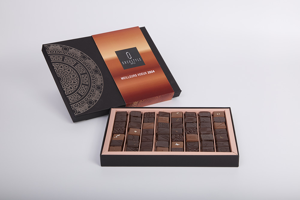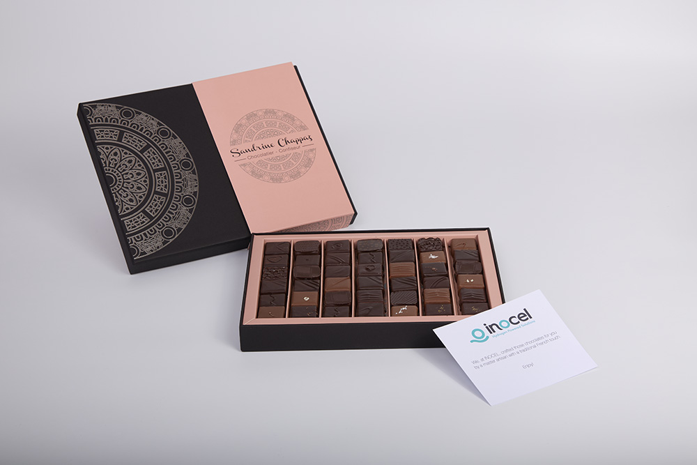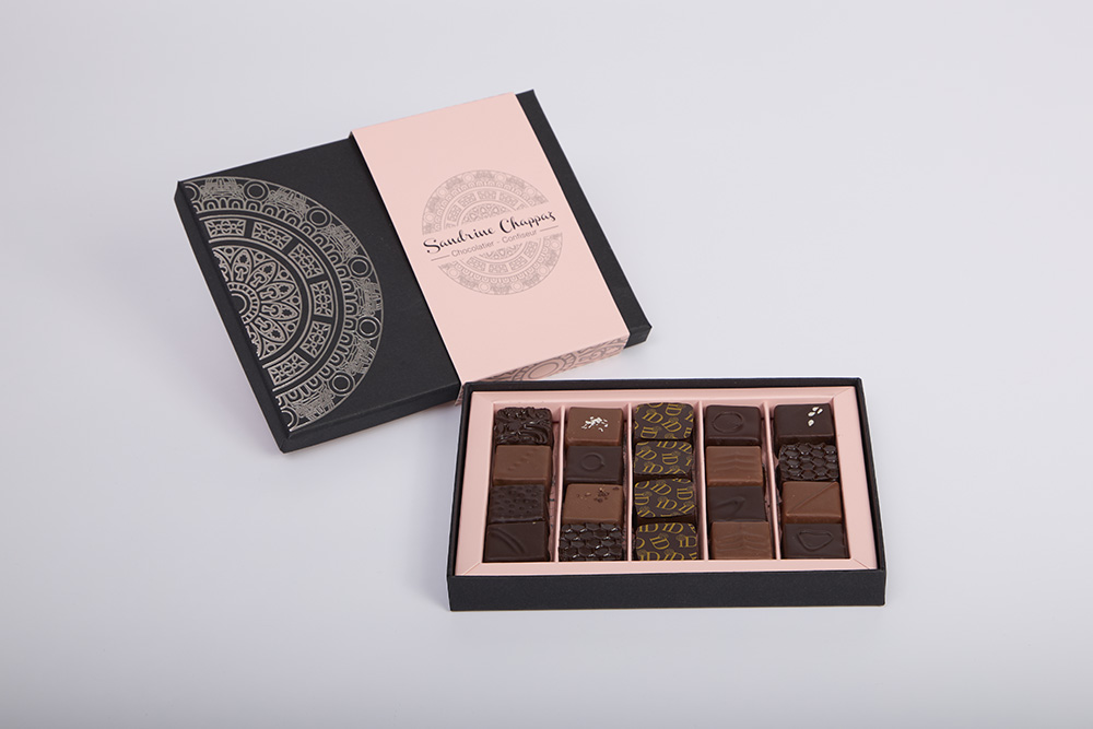 En plus de notre gamme de packaging habituels, nous vous proposons un service de personnalisation complet, sur les chocolats